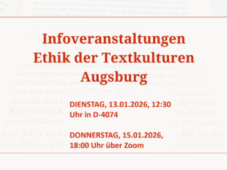 Am Dienstag, den 13.01. um 12:30 Uhr in D-4074, findet die Informationsveranstaltung zum Master „Ethik der Textkulturen“ für Studieninteressierte an der Uni Augsburg statt. Am […]