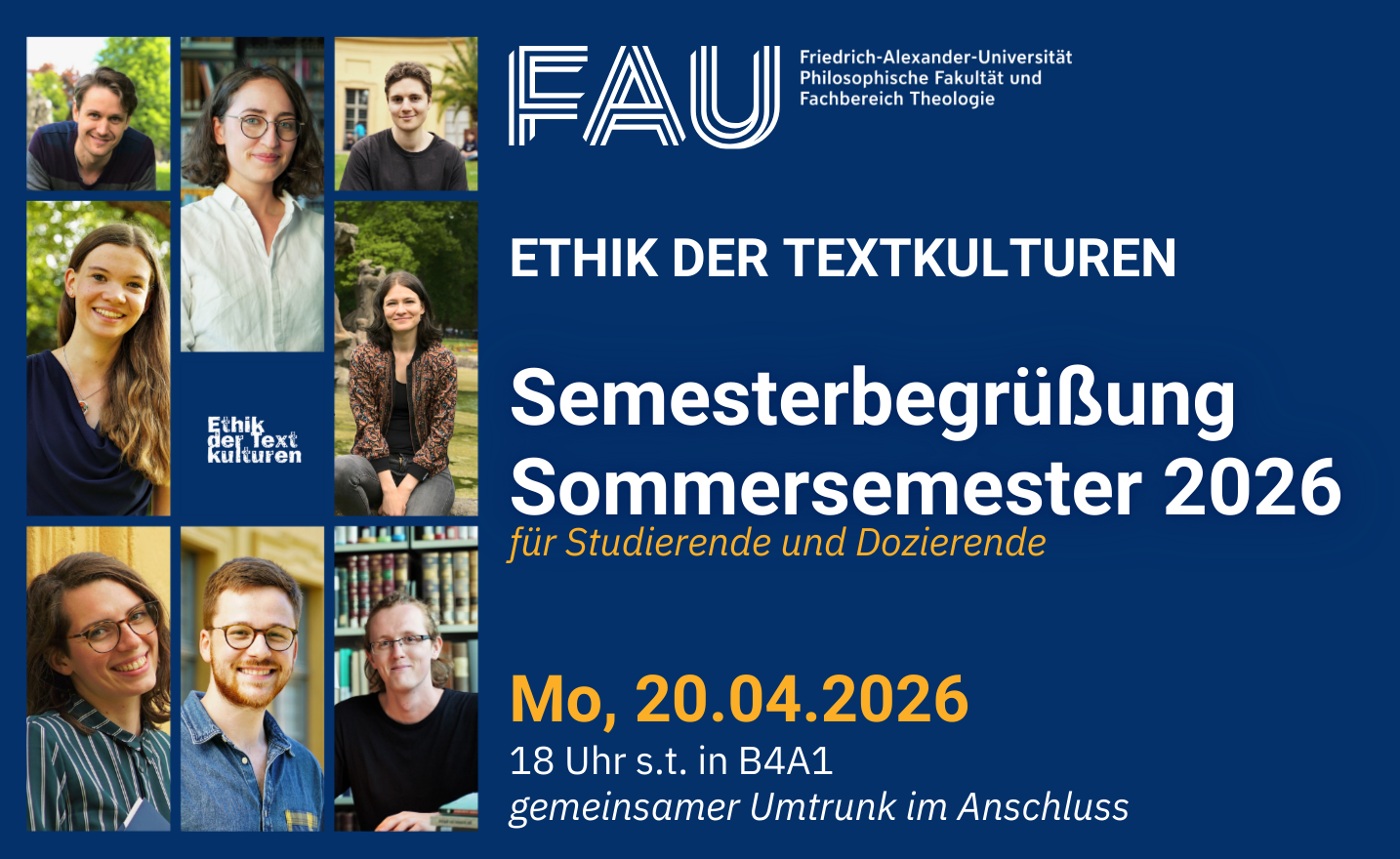 Herzliche Einladung an alle Erlanger Studierende inkl. Erstsemester und Dozierende: Wir treffen uns am Montag, 20.04.26 im Raum B4A1 um 18:00 Uhr s.t. Im Anschluss an die Veranstaltung gibt es einen gemeinsamen Umtrunk.
